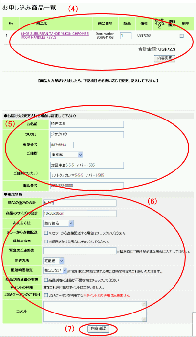 商品お届け先の確認。