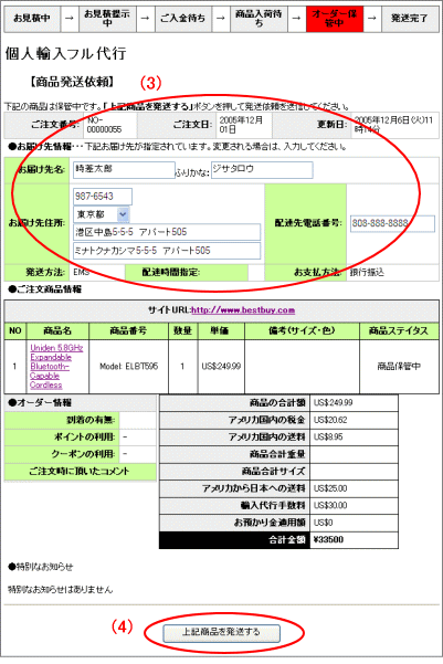日本へ発送して宜しければ、下記の発送依頼のお手続きをお願いします。