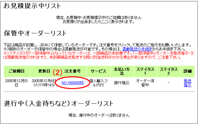 発送依頼のお手続きは、会員ページ左メニューの、保管中オーダーリストをクリックして下さい。 |