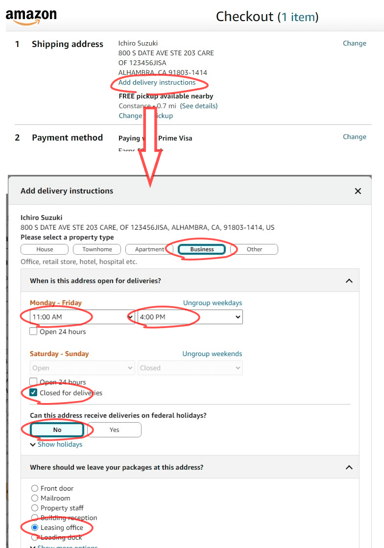 Amazonでご注文の際はこちらのご記入例を参考に、配達オプション指定のご協力をして頂けると受け取りがスムーズになります