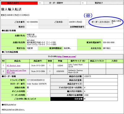 ご注文の品がJISAに到着したことを示しています。日本への発送が可能な状態です。