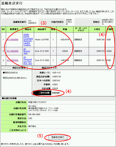全ての内容でご了承頂ければ、[混載発送実行]ボタンを押して下さい。